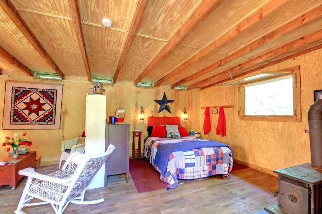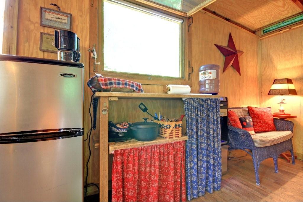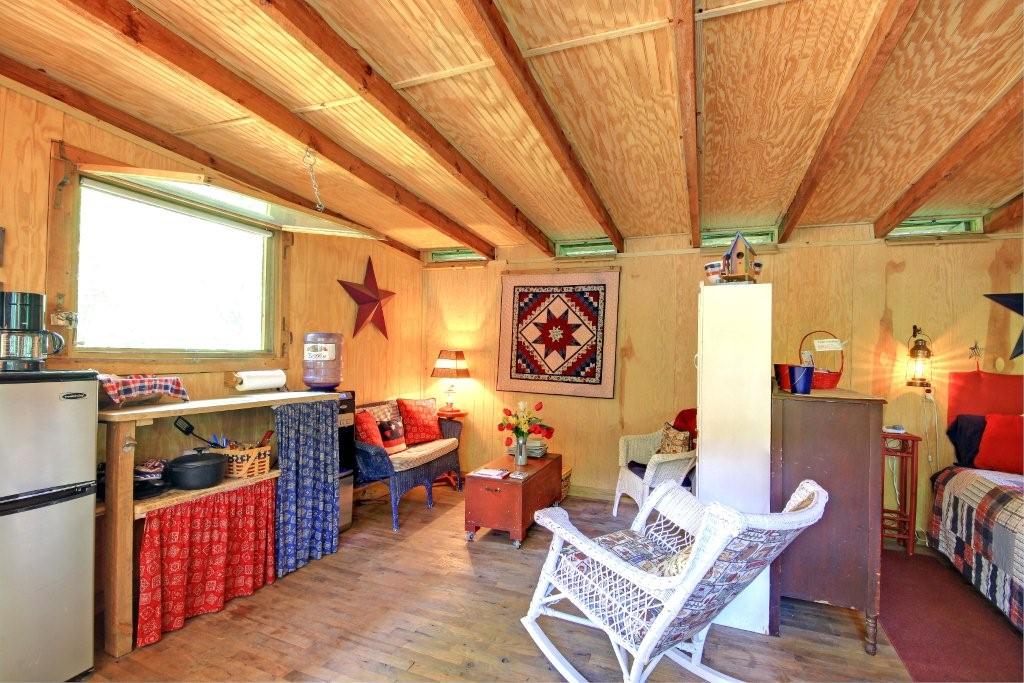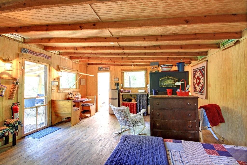 Riverside Escapes offers an adventure cabin rental on the island and a more modern rental on the mainland. Our Island Retreat is designed for the adventurous. Located on a small private island in the river, Americana Cabin is an old fashioned one room cabin.