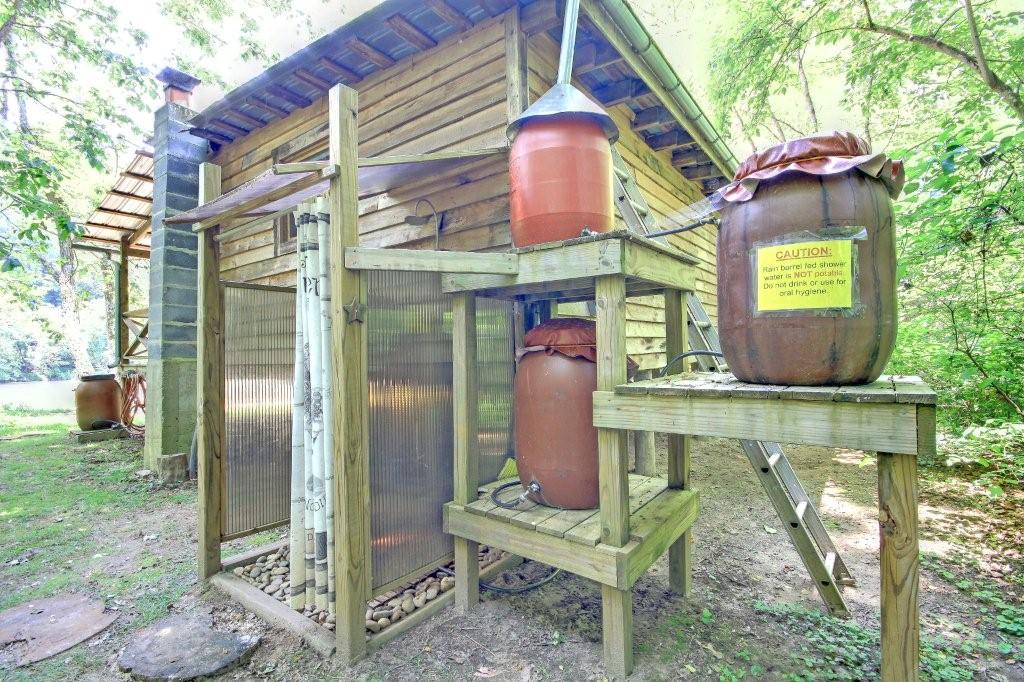 A big step above tent camping, cabin stay means days of fishing, cooking over the campfire, and bathing in the rain barrel shower.